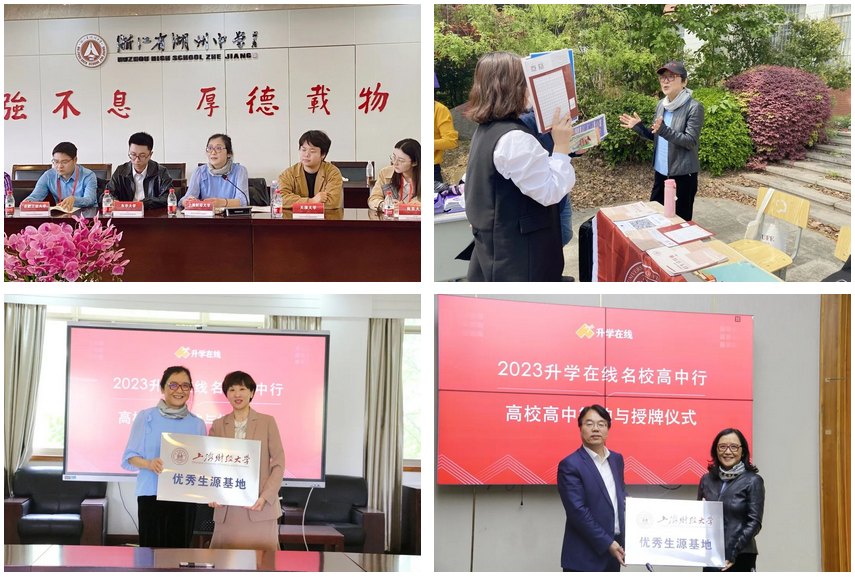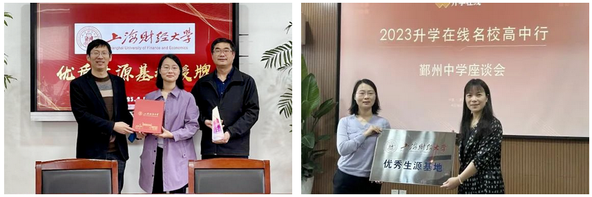 4月15日,上海财经大学浙江省招生组第二分队叶建芳、高嘉蔓老师代表我校与浙江省湖州中学、杭州市第十四中学开展招生座谈会和招生咨询活动,并分别与两所高中举行“上海财经大学优秀生源基地”签约授牌仪式,建立起友好合作关系。