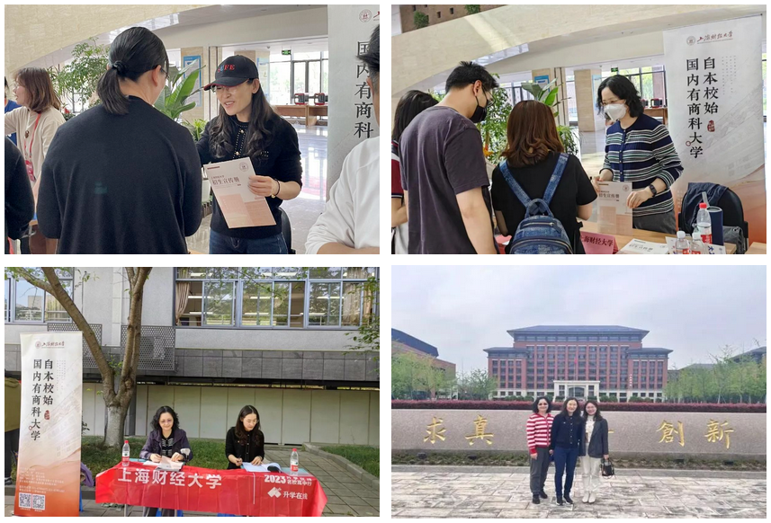 在现场咨询活动中,浙江省招生组第三分队成员周波、李伟、杨晓兰、李珊珊老师对有关上海财经大学在浙江省的招生情况及相关专业问题进行了耐心解答。