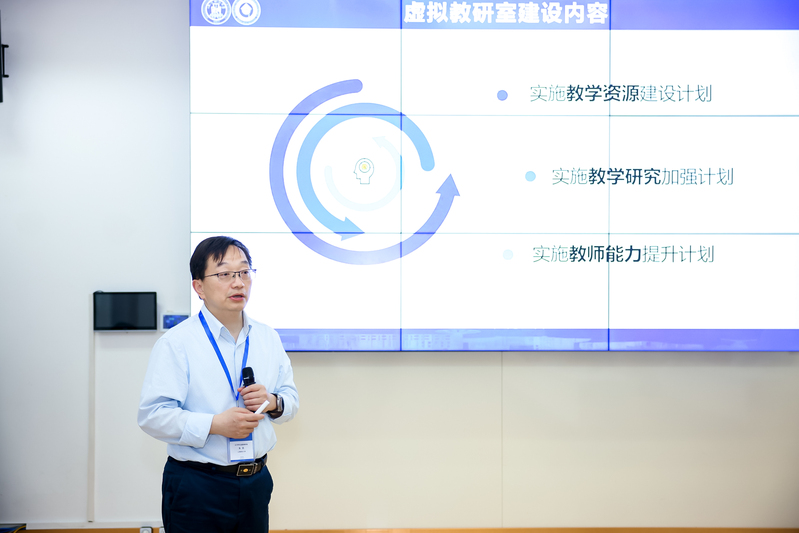 随后7个课程(群)教学类虚拟教研室、3个专业建设类虚拟教研室的负责人、代表教师结合各校实践,围绕虚拟教研室的建设目标、建设举措、建设成效及建设规划等方面依次分享了各自虚拟教研室的 建设经验。