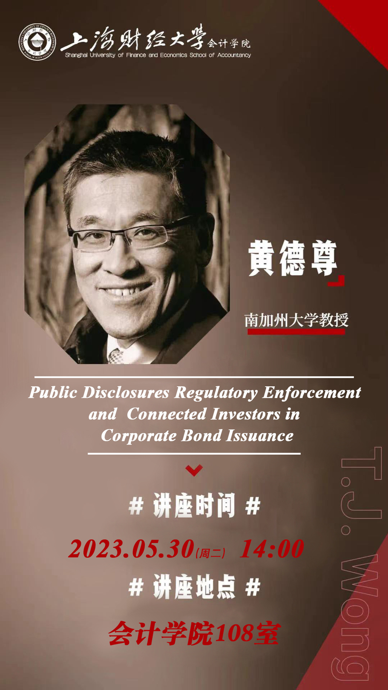 【讲座主题】Public Disclosure Regulatory Enforcement and Connected Investors in Corporate Bond Issuance