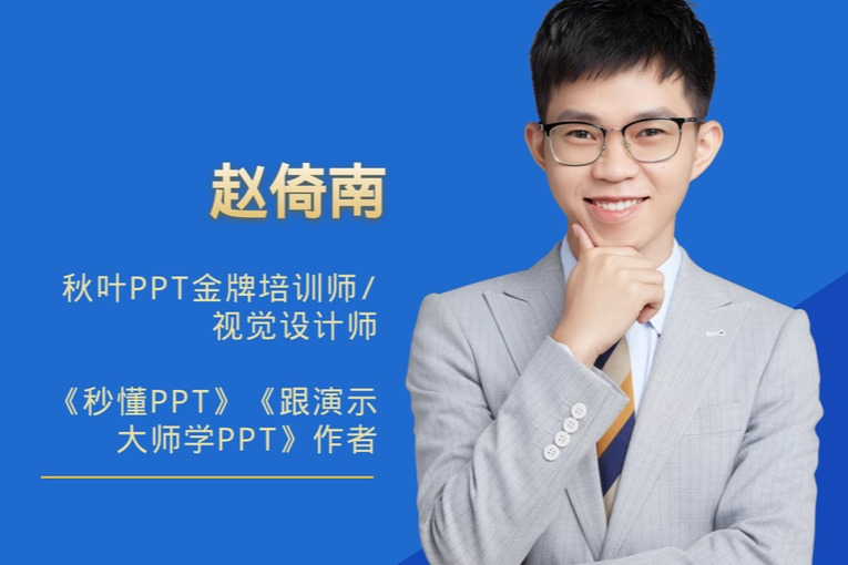 主讲人:赵倚南,秋叶PPT金牌培训师 、视觉设计师,《秒懂PPT》《跟演示大师学PPT》作者
