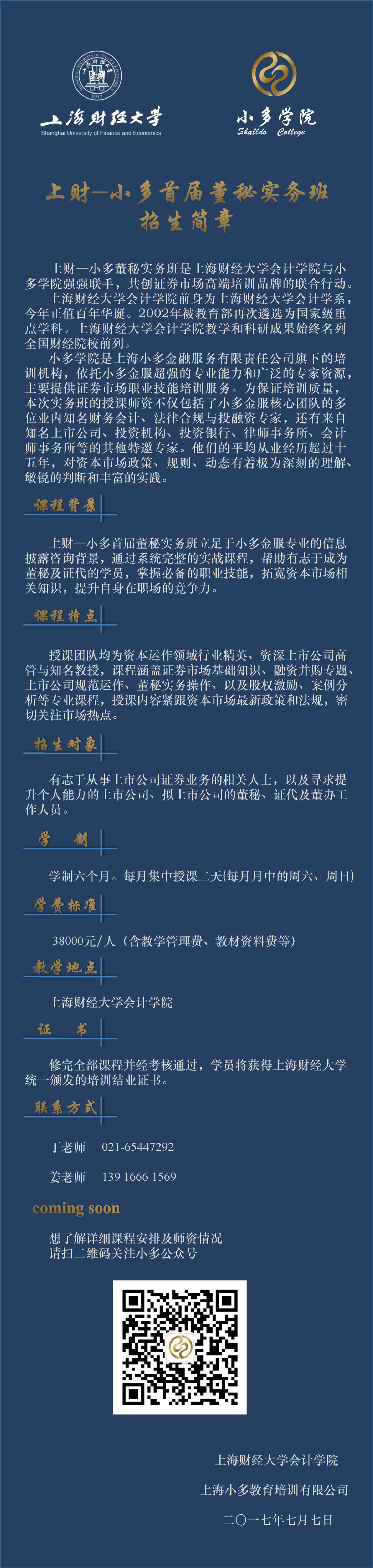 上财—小多首届董秘实务班招生简章