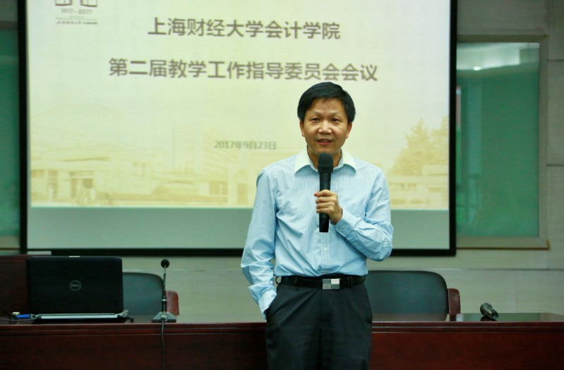 2017年9月23日上午9点,上海财经大学会计学院第二届教学指导委员会第一次会议在会计学院206室隆重召开。上海财经大学副校长陈信元、教务处处长朱红军、会计学院院长李增泉、会计学院党委书记周国良、教指委委员、学院教授委员会委员及学院党政领导等23人参加了此次会议。会议由会计学院党委书记周国良主持。