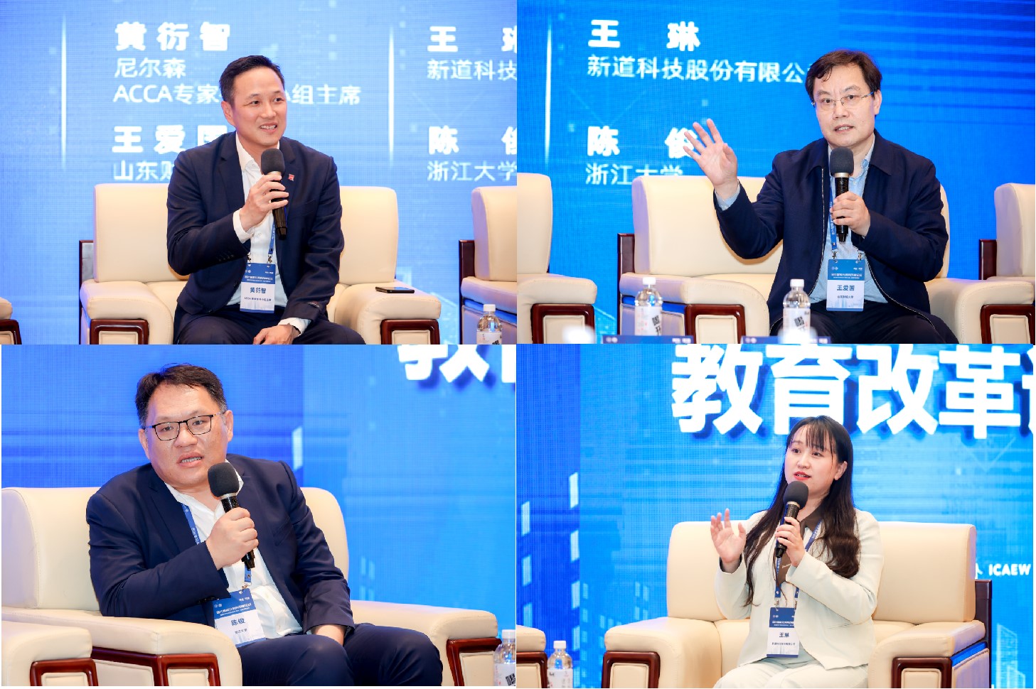 ACCA专家指导小组主席、尼尔森中国财务总监黄衍智先生,山东财经大学王爱国教授,浙江大学陈俊教授,新道科技股份有限公司智能财务教研总监王琳女士参与圆桌对话交流。
