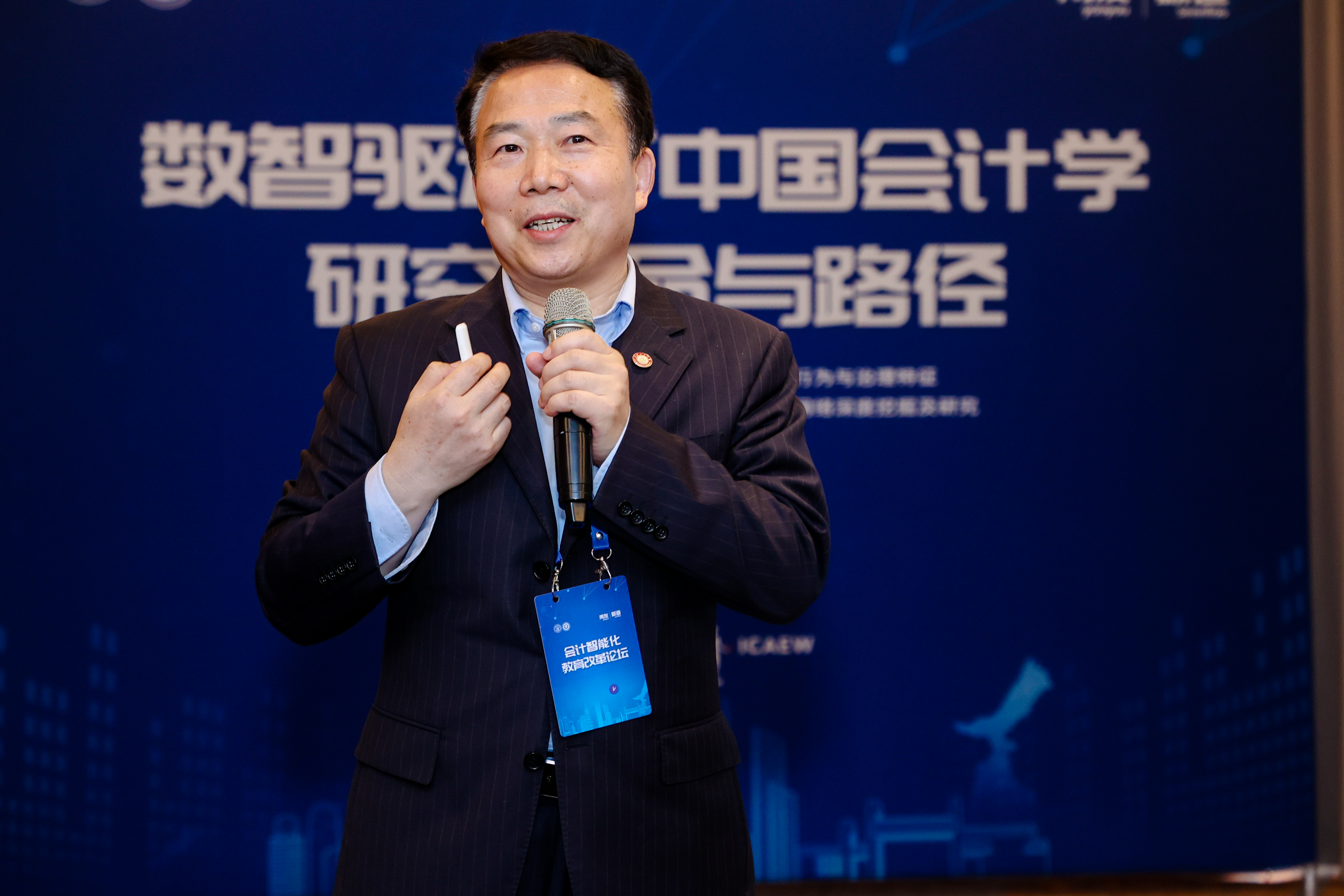 上海财经大学会计学院院长靳庆鲁就《洞悉数智时代, 财引未来教育》进行了大会分享。