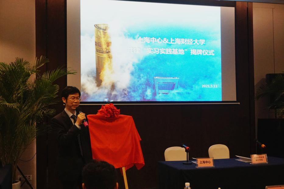 2021年5月11日上午9:00,上海财经大学会计学院与上海中心大厦建设发展有限公司共建学生实习实践基地签约揭牌仪式在上海中心5楼会议室顺利举行。上海城投(集团)有限公司计划财务部副总经理朱天,上海中心大厦建设发展有限公司董事、总经理、高级顾问顾建平,副总经理江彪,财务总监&计划财务部总经理乐嘉伟,综合管理部副总经理李剑英,上海财经大学会计学院院长靳庆鲁,副院长朱凯、曾庆生,党委副书记黄莎,院长助理、MPAcc中心主任张纯,院长助理周波,教授潘飞,校友事务主管高嘉蔓共同出席签约揭牌仪式。仪式由上海中心大厦建设发展有限公司人力资源高级经理周思渊主持。