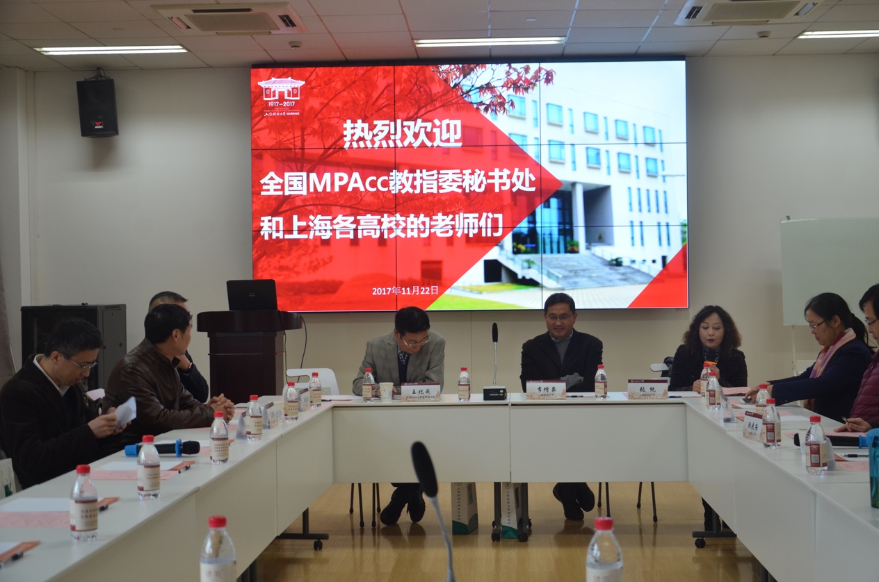 2017年11月22日,上海市MPAcc高校会计专业硕士学位论文质量控制与评价交流会在上海财经大学会计学院108报告厅隆重召开,本次会议由上海财经大学会计学院MPAcc中心主办。全国MPAcc教指委会副主任委员兼秘书长王化成、全国MPAcc教指委会秘书处办公室主任王永妍以及上海各大高校代表共同参会。会议由上海财经大学MPAcc中心主任张纯主持。本次会议围绕专业学位培养单位如何把控学生毕业论文质量,提高学生专业学位论文水平等问题展开研讨。