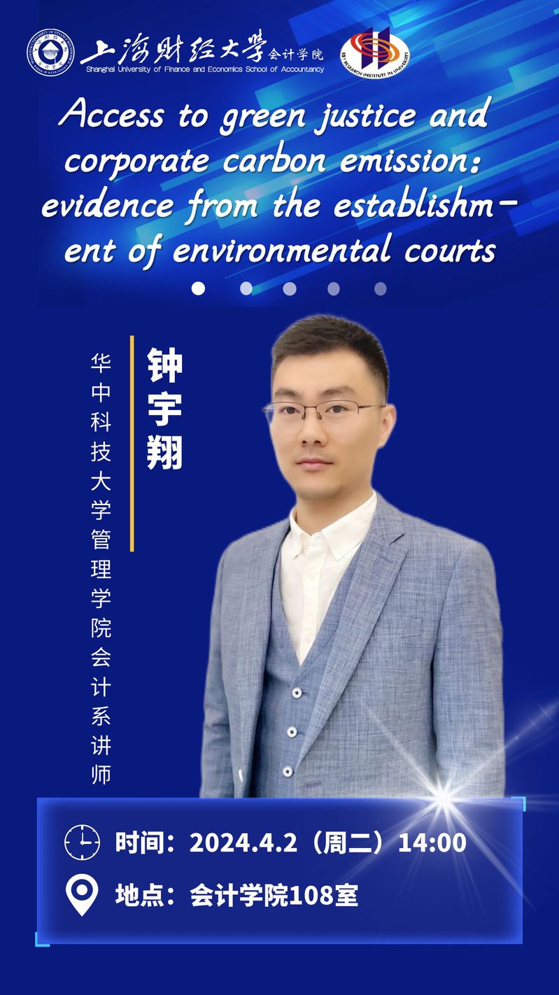 【讲座主题】The access to green justice and the firms’ carbon emissions: evidence from the establishment of environmental courts and tribunals