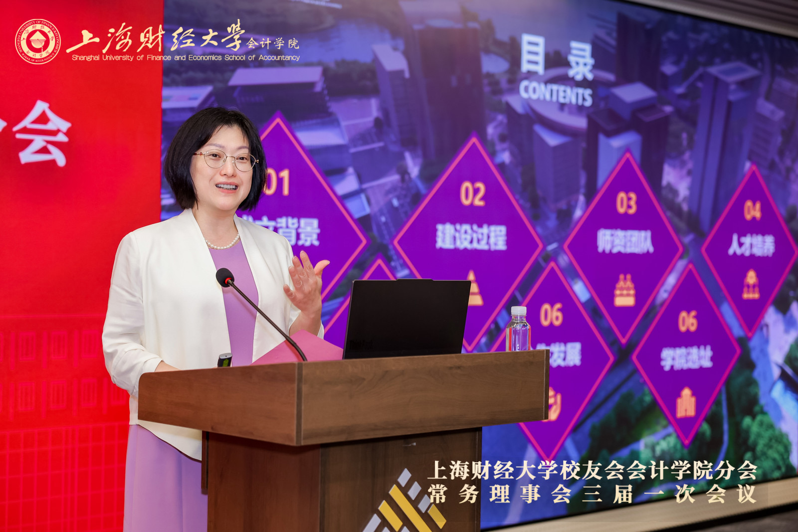 2024年4月21日,上海财经大学校友会会计学院分会(以下简称“会计学院分会”)常务理事会三届一次会议在上海财经大学滴水湖高级金融学院隆重召开。上海财经大学副校长、滴水湖高级金融学院党总支书记陈信元,会计学院分会名誉会长、原上海财经大学校长汤云为,会计学院分会名誉会长、中国证监会前首席会计师张为国,会计学院分会主要负责人及常务理事三十余人出席会议。上海财经大学滴水湖高级金融学院执行院长陈选娟受邀参会。会议由会计学院分会秘书长鞠玮主持。