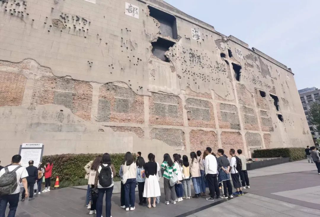 四行仓库是战争年代历史的见证,也是民族精神的象征。西墙上触目惊心的弹孔和炮击痕迹让人倍感震撼,当年战争的激烈情形仿佛就呈现在眼前,每一个弹孔背后都是革命先辈奋战牺牲的身影。回想电影《八佰》,“八百壮士”中的大多数人都很年轻,却毅然决然为了国家的未来牺牲自我,在中国抗战史上写下了光辉的一页。除了缅怀革命先辈,我们也应当深刻认识到和平的来之不易,作为党员更应当增强奉献意识,为社会发展、国家发展做出贡献。