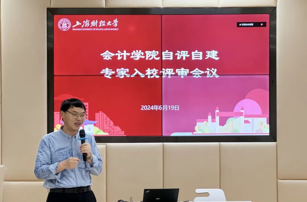 紧接着,会计学院副院长唐松对自评自建工作的基本情况作了汇报,他分别从会计学院发展概况、自评自建工作报告、本科教学改革举措及成果三个方面向专家组进行了详细的介绍,重点围绕本科地位、培养过程、教学资源、学生发展、质量保障五个维度,全方位介绍了学院本科教育培养工作,展现了学院在培养高素质专业人才方面的做法和成就。