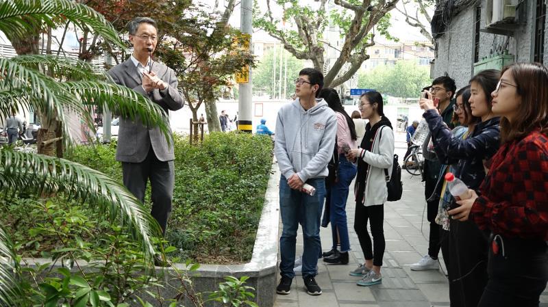 4月26日下午2点,会计学院在党委副书记黄莎老师的带领下,学院关工委甘兆志老师、尤家荣老师和学院教工第二党支部10多名教工党员代表以及毕业班20多名学生党员一起,参加了一场“行走的红色党课”。由原虹口区委党校副教授、现虹口区红色记忆传讲工作室负责人张家禾老师主讲,通过走访虹口多伦路街区多处红色遗迹,了解党的城市斗争史。