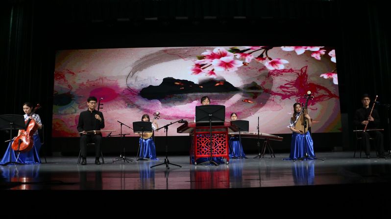 整场晚会节目形式多样,高潮迭起。精彩纷呈的歌舞串烧、高山流水的民乐表演、元气满满的热情宅舞、令人捧腹的相声表演、深情动人的独唱表演、温馨感人的手语表演,更有学生组织各具特色的活泼表演,将晚会的气氛推向最高潮。台上热情表演,默契配合;台下反响热烈,欢呼不断。