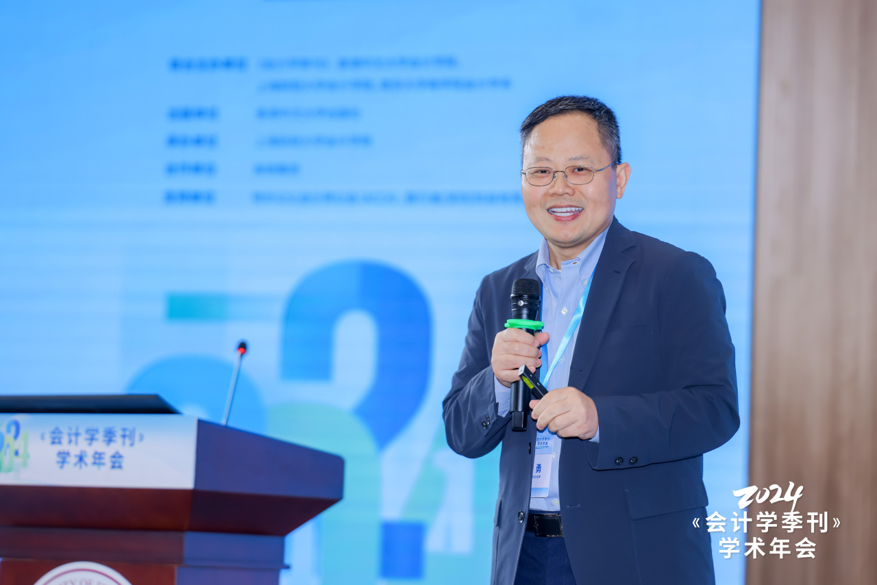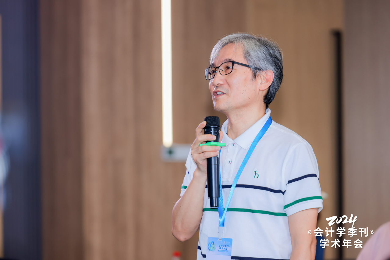 《会计学季刊》执行主编、香港中文大学吴东辉教授从期刊创立情况及未来工作设想两个方面向与会人员作《会计学季刊》创刊介绍。他首先向大家介绍了《会计学季刊》编委会、学术委员会、顾问委员会等团队构成以及期刊宗旨与选稿标准,他强调期刊坚持融汇中西,以“计利当计天下利”为己任,立足时代重大、根本和关键问题,学术报国,服务人民。面对中国制度会计研究的未来机遇,期刊将依托于强大有力、专业负责的编委团队,不断提高稿件质量要求,将《会计学季刊》建设为会计与财务学术领域的重要阵地、学界认可的高水平期刊以及推动学界同仁交流互动的优质平台!
