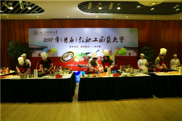 3月31日下午,“喜迎财大百年校庆 弘扬中华饮食文化” 上海财经大学2017年(首届)教职工厨艺大赛在教工食堂如期举行。本次厨艺大赛由校工会、后勤实业中心主办,来自15个部门的16支队伍32名教职工参加比赛。副校长刘兰娟、副校长方华等领导来到比赛现场为老师们加油助力。