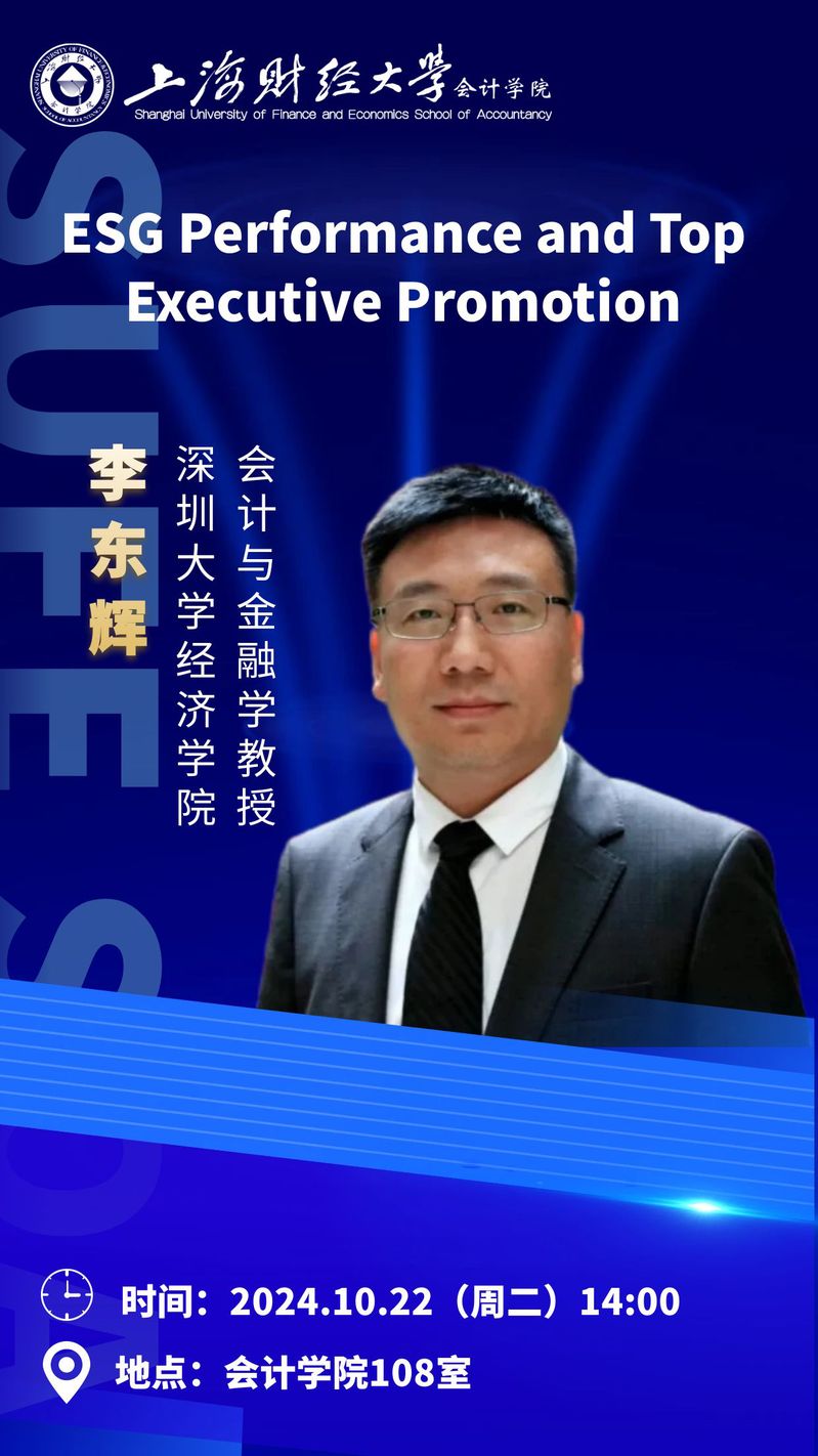 【嘉宾介绍】李东辉,深圳大学经济学院会计与金融学教授