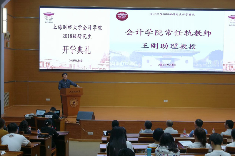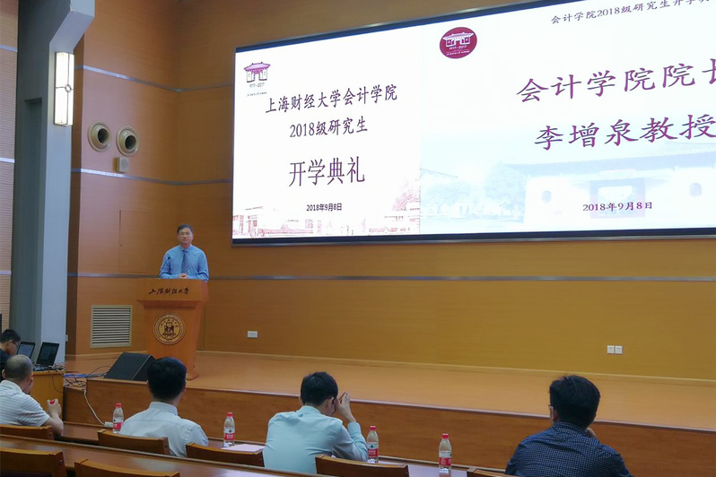 2018年9月8上午9点,上海财经大学会计学院2018级新生开学典礼在我校创业中心一楼报告厅举行。上海财经大学副校长陈信元、上海财经大学研究生院副院长李劲松,会计学院院长李增泉,学院党委书记周国良,副院长靳庆鲁,副院长曾庆生,党委副书记黄莎,院长助理张纯,教师代表王刚等悉数出席此次典礼。