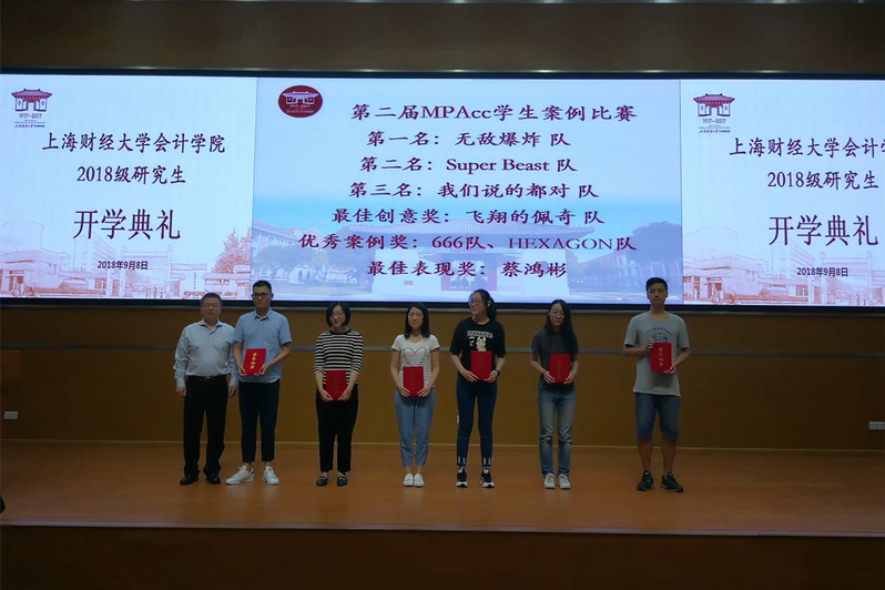 开学典礼最后,由会计学院党委书记周国良老师为会计学院第二届案例大赛获奖团队代表颁发荣誉证书并合影留念。