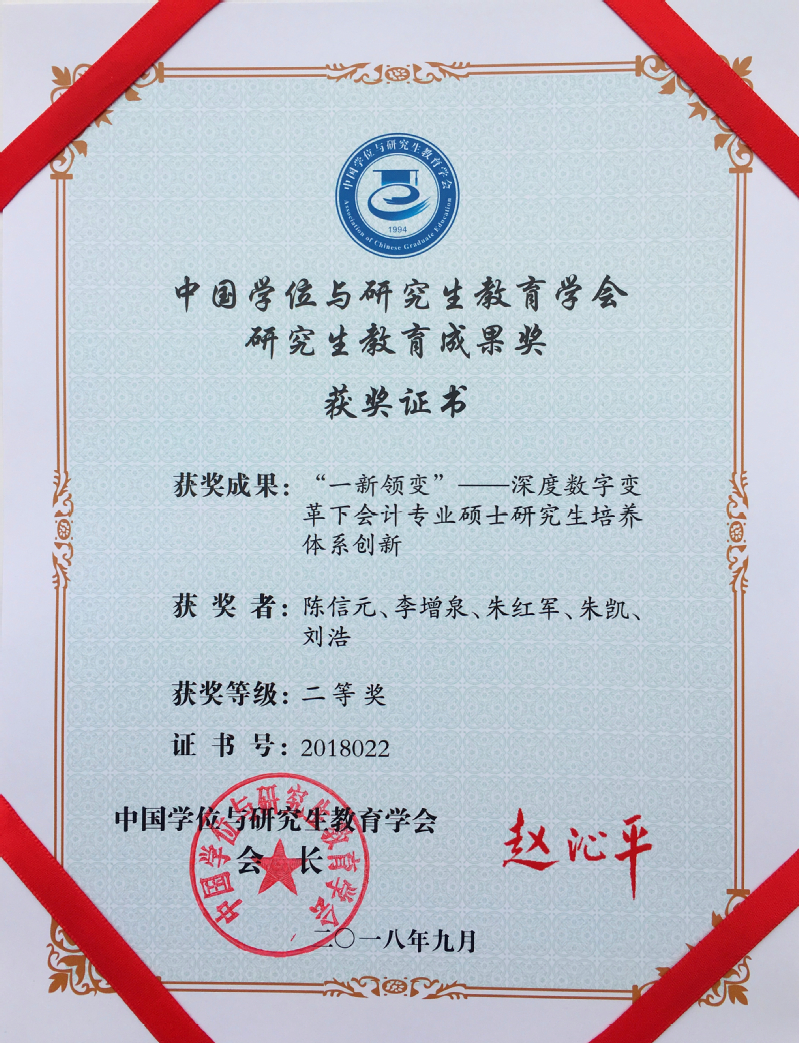 日前,中国学位与研究生教育学会公布了第三届中国学位与研究生教育学会研究生教育成果奖,由上海财经大学会计学院陈信元教授领衔完成的《“一新领变”——深度数字变革下会计专业硕士研究生培养体系创新》教学项目,荣获二等奖。