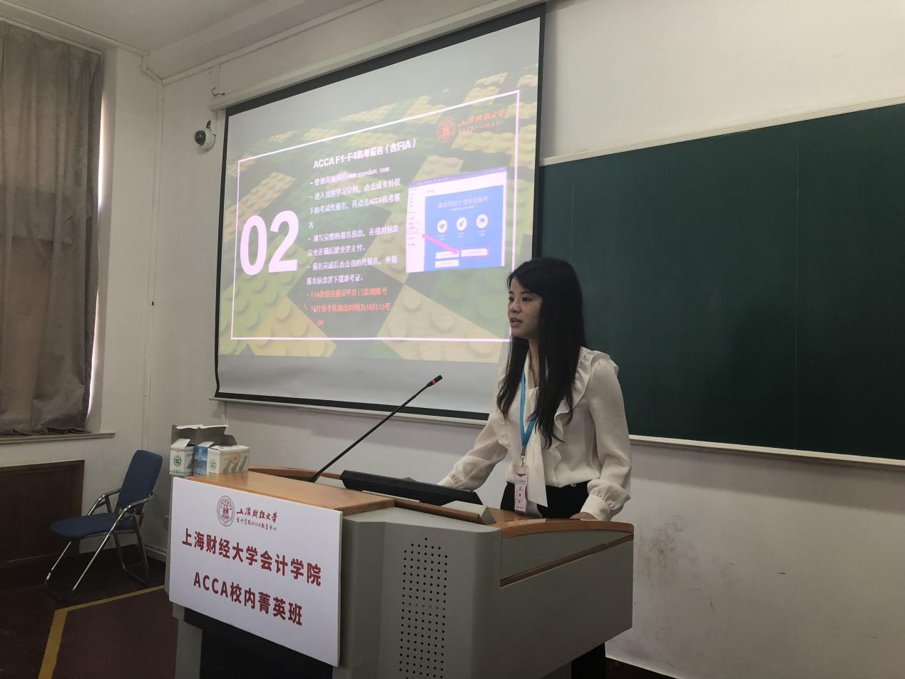 接下来,菁英班班主任就课程安排,学习时间,报考要求等方面给大家进行了详细的讲解。最为重要的是,向同学们介绍我们成立了上海财经大学ACCA校友会,旨在架起学习ACCA的同学们之间沟通交流的桥梁,推动同学们之间的互动性。