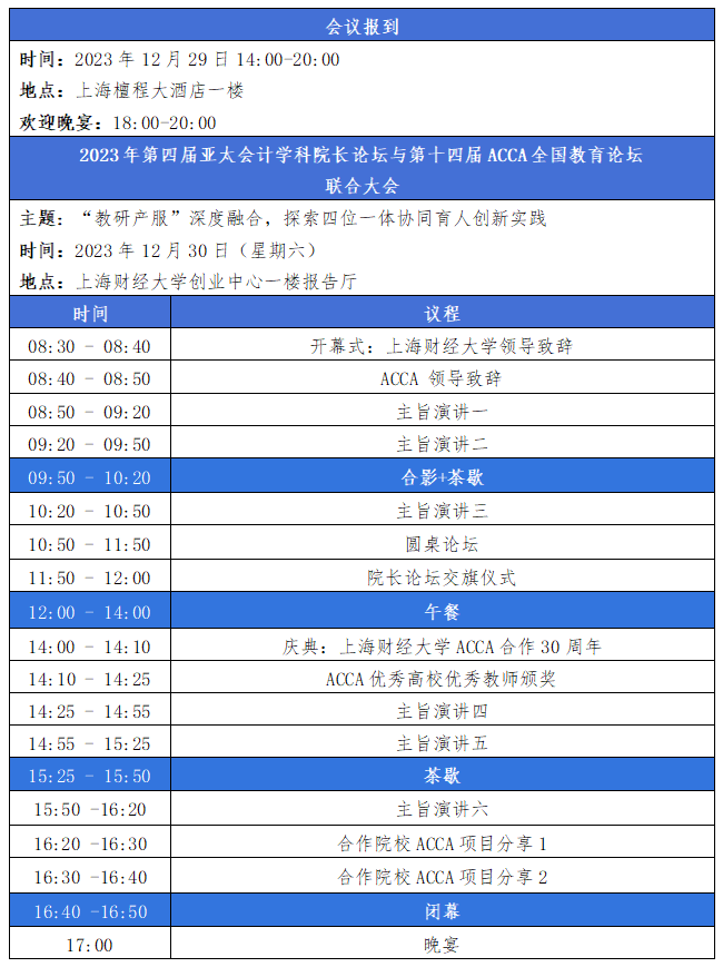 2023年第四届亚太会计学科院长论坛与第十四届ACCA全国教育论坛联合大会议程(拟定)
