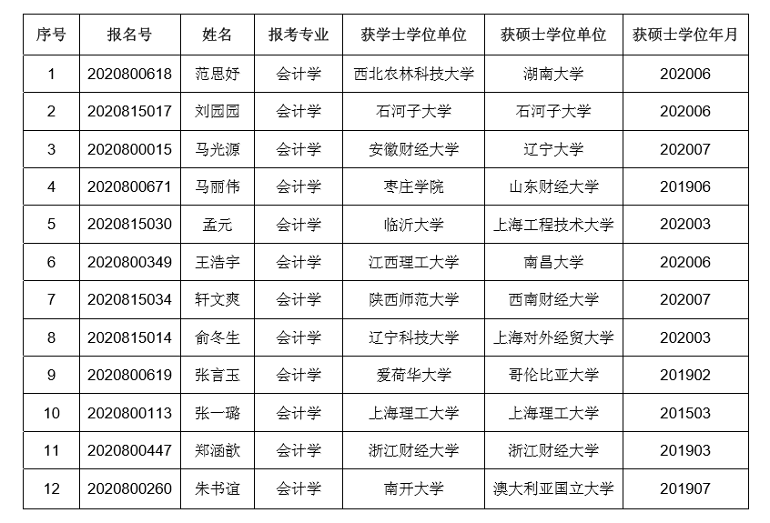 会计学院 2020 年“申请考核”制博士研究生招生综合考核名单公示