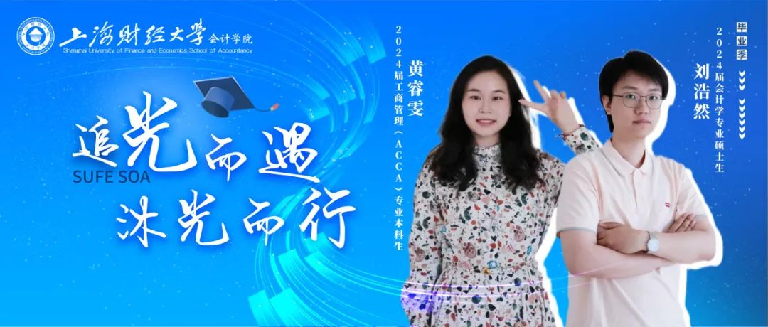 在青春的征途中 总有这样一群人 他们以梦为马、不负韶华 用不懈的努力与坚持 在求知的道路上追光而遇、沐光而行 每一年,毕业生的故事都在 武川路111号上海财经大学会计学院上演 2024年上海财经大学会计学院特别推出 “追光而遇,沐光而行”——毕业生故事专访 讲述学子故事,传递匡时之声 本次活动共采访12位会计学院本硕博毕业生,每一位受访的毕业生,都是在追光之旅中不懈奋斗的勇士,他们的故事,如同星辰般璀璨,照亮前行的道路。让我们一起走进他们的世界,聆听那些关于梦想、勇气与成长的声音。