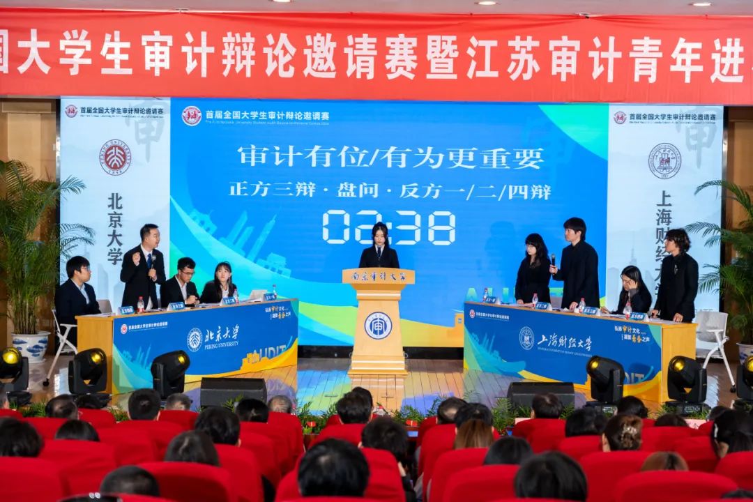 5月25日至26日,由江苏省审计厅与南京审计大学共同举办的“弘扬审计文化 凝聚青春之声”首届全国大学生审计辩论邀请赛暨江苏审计青年进校园活动在南京审计大学举行。来自北京大学、南京大学、中国人民大学、山东大学、中南财经政法大学、上海财经大学、南京信息工程大学、南京审计大学等八所高校的辩手们围绕“审计高质量发展,技术进步还是制度革新更重要”“审计揭示问题‘上半篇文章’还是审计整改‘下半篇文章’更重要”“审计有位还是审计有为更重要”等话题展开辩论。最终由会计学院杨硕、谭思远,经济学院任镜樾,信息管理与工程学院车亦敏代表的上海财经大学辩论队战胜北京大学学生辩论协会,夺得本届全国大学生审计辩论邀请赛冠军!下面让我们一起聆听会计学院获奖学子与辩论的精彩故事~