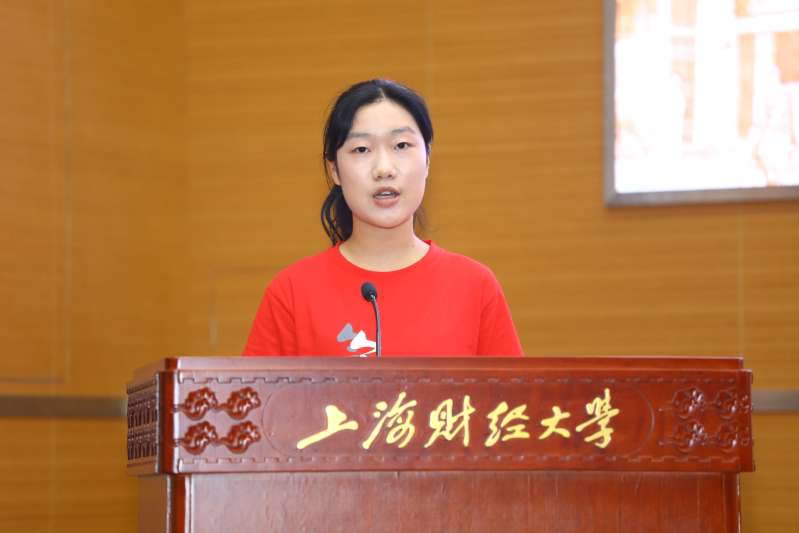 2019级会计学专业陈宗涯同学作为新生代表发言。她表示大学是人生旅途的全新起点,要勇于迎接变化和挑战,不仅要通过阅读与思考探索自我,更应培养社会责任心并将责任意识与使命感付诸实践。
