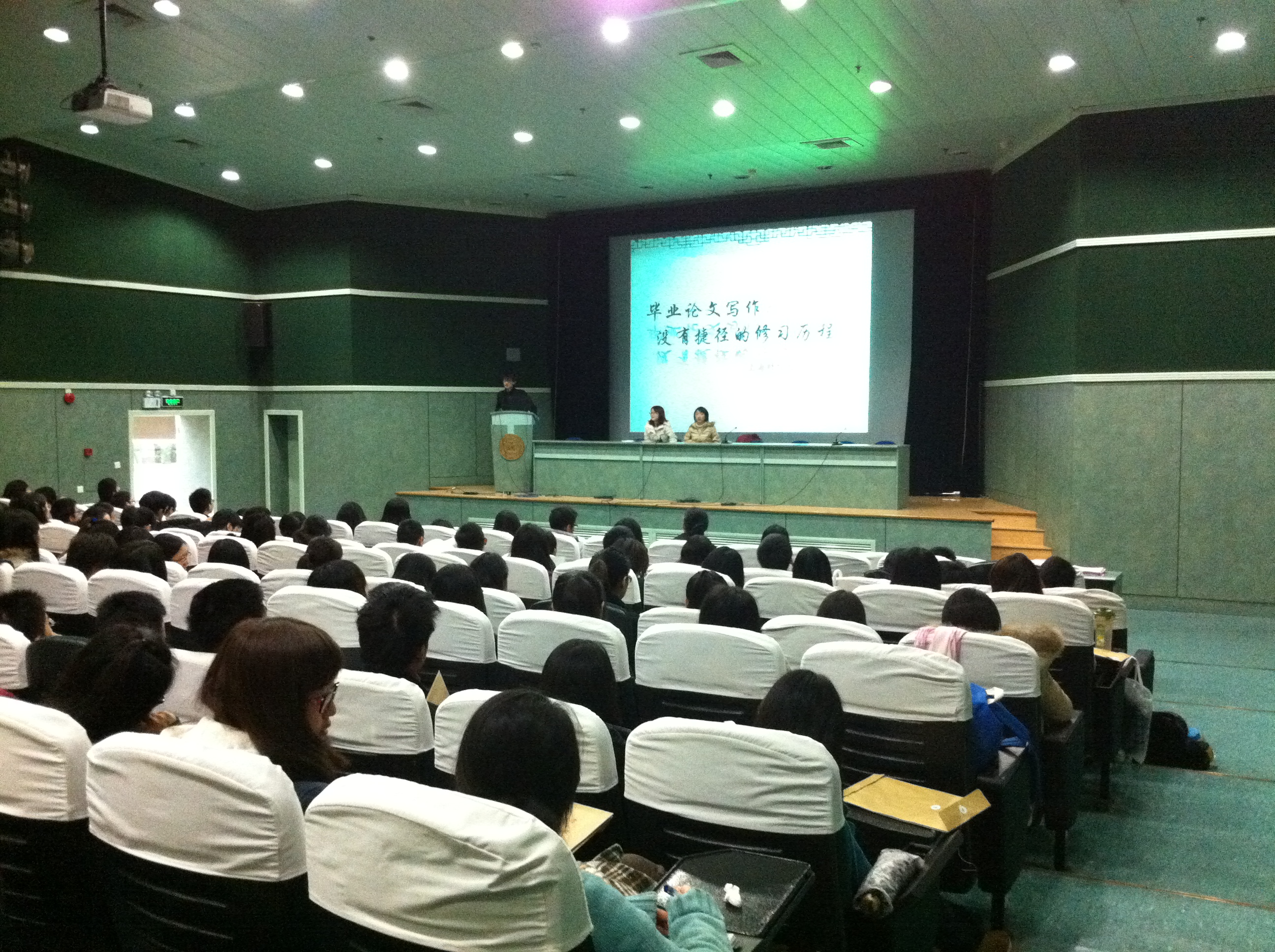 11月23日,我院2013届毕业生毕业论文指导大会暨毕业就业动员会在学校行政楼二楼报告厅举行。学院青年教师赵子夜副教授从选题、破题、资料查查、学术规范各方面,为全体毕业生做了毕业论文写作指导。研究生秘书张婷老师就材料的提交截点进行了强调。毕业班辅导员秦文佳老师就毕业就业流程做了简要说明,并提醒大家按时保质完成毕业论文,希望全体毕业生能顺利通过每年的毕业论文答辩。