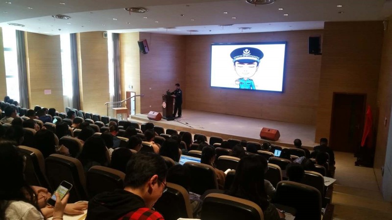 谢晔警官结合近期本市高校师生被骗的案例就大学生涉世未深的心理特征以及犯罪分子的作案手段进行深入浅出讲解,生动形象地揭示了骗子行骗的常用伎俩,也分析了上当受骗的原因。他告诫同学们要增强法制观念,提高法律意识,在生活中做到不贪心、不轻信,遇到类似诈骗要冷静处理,更好地保护自己的财产安全。谢晔警官精彩的给学生们上了一堂生动的防诈骗警示教育课。