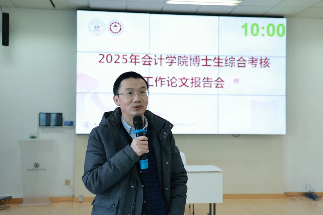 工作论文报告会于2025年1月13日在会计学院108会议室举行,由会计学院副院长、博士生导师曾庆生教授主持,学院共16位博士生导师组成本次论文报告考核小组。工作论文考核包含两个环节,首先是博士生报告自己的论文并就之前学院全体博士生导师会前通讯评审提出的问题一一作答;其次,考核小组专家就博士生的研究选题、研究设计、实证检验、研究创新性等方面进行现场提问,博士生现场作答。最后每位考核专家对所有参加资格考的工作论文(自己指导的学生论文除外)进行打分评价