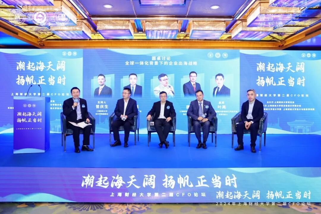 圆桌对话一由上海财经大学会计学院副院长曾庆生主持。普华永道中国企业并购服务主管合伙人李明,安永先进制造与移动出行(汽车)行业主管合伙人叶亮,光明乳业股份有限公司财务总监赵健福,上海昊海生物科技股份有限公司执行董事、财务负责人唐敏捷共同分享对于“全球一体化背景下的企业出海战略”的灼见真知。