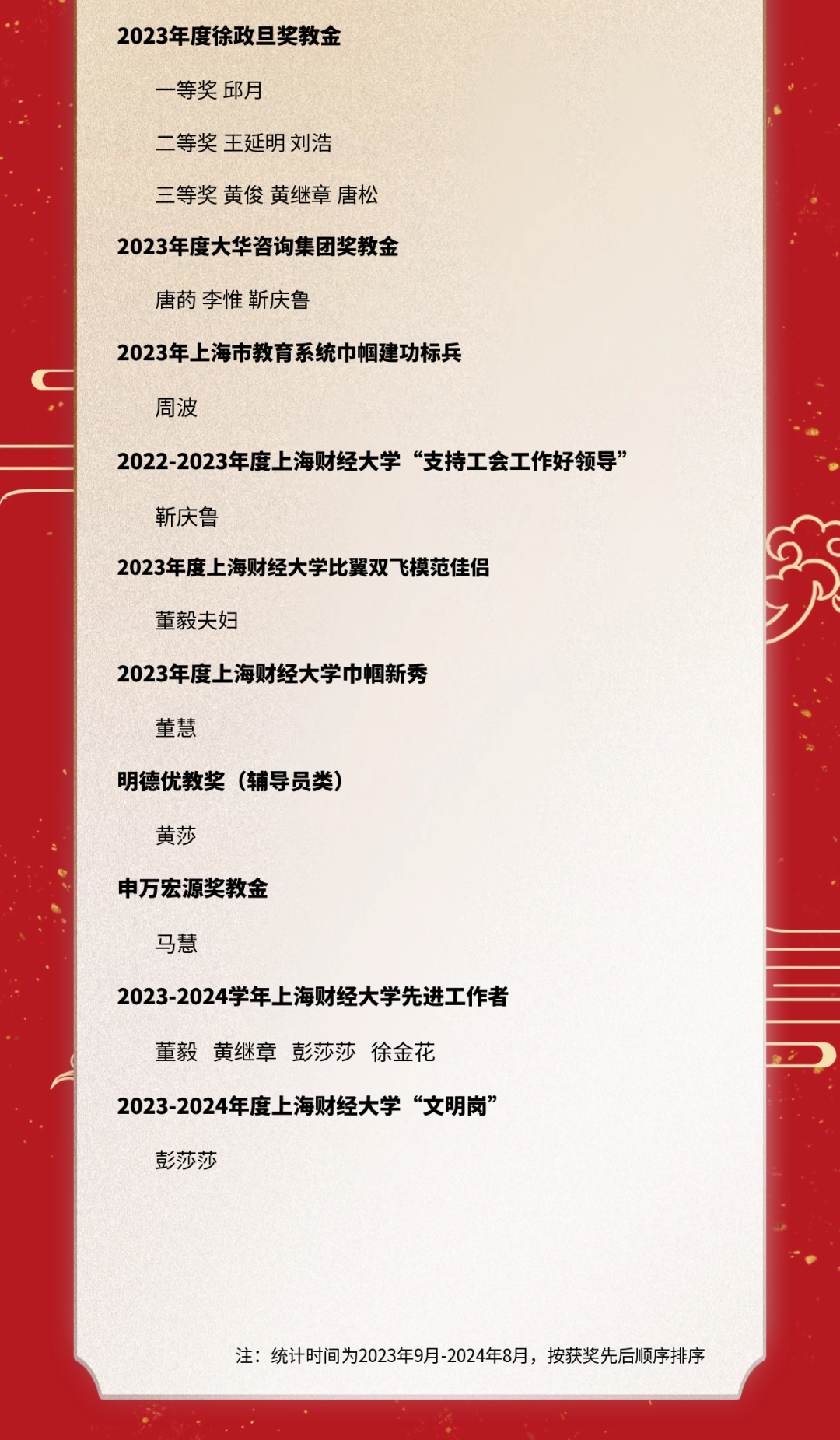 作为一名上财毕业生,以新教师的身份回到母校参加第四十个教师节活动,心中满是温暖与感激。学校百年风雨,正是无数践行教育家精神的上财师者,把“厚德博学,经济匡时”的校训真正融在了自己的教师生命之中!上财的教育精神,既有经世济民的家国情怀,也不失脚踏实地的务实态度。望我们新一代上财教师能继续传承这种精神,用真诚与热情对待每一位上财学子。