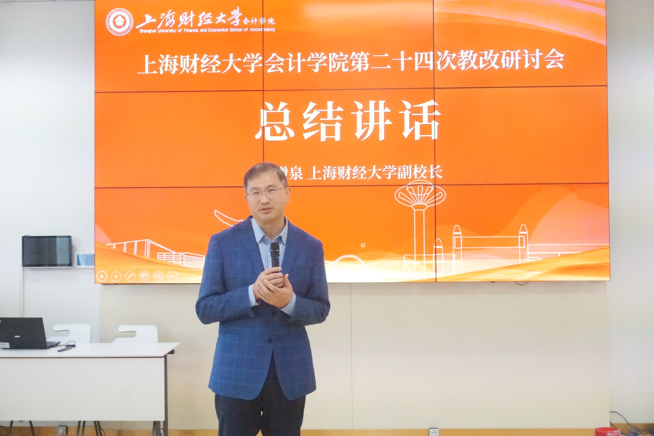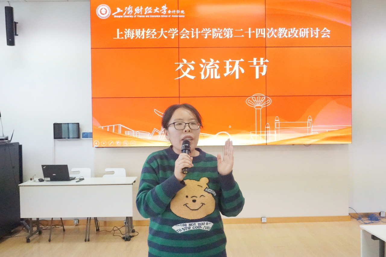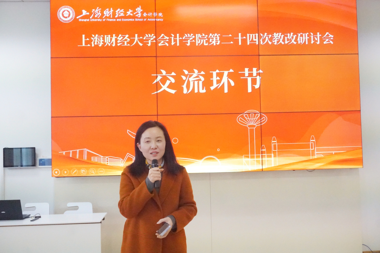 上海财经大学会计学院第二十四次教改研讨会上半场由会计学院党委书记郑继红主持。