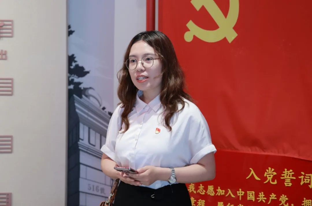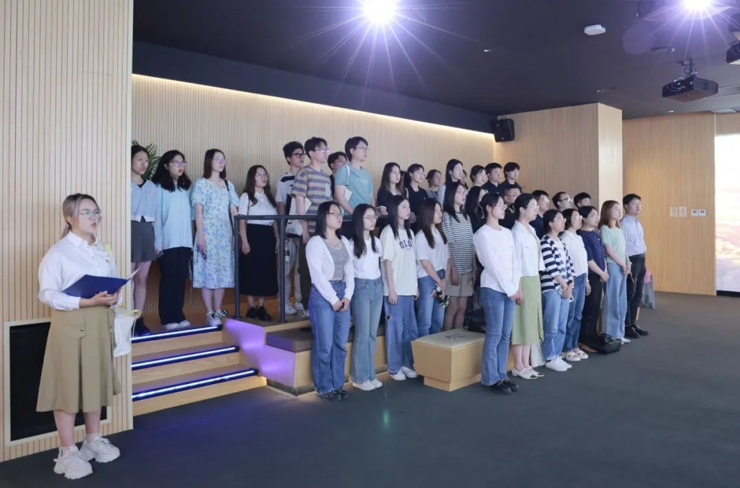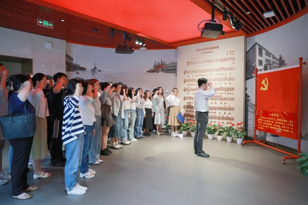 参观最后,师生党员通过国歌影视教育片,再次重温红色记忆,感悟革命先辈不屈不挠的斗争精神和炙热浓厚的爱国情怀,并自发齐唱国歌,激昂的旋律饱含赤诚,豪情,像战斗的号角,催人奋进。随后,在本科二党支部书记陈允欣老师的带领下,大家面向党旗,右手握拳,重温入党誓词,铿锵有力的誓言在整个场馆回荡,督促党员们不忘初心,在实现中华民族伟大复兴的道路上不断前进,前进!