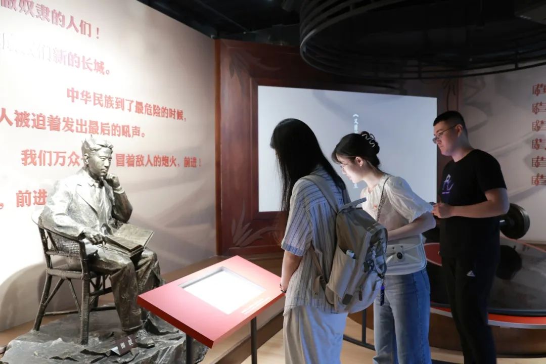 国歌展示馆共包含6个展厅,通过2000平方米五大乐章的精品陈列,以及场景再现、多媒体互动等多种形式,全面展示了《义勇军进行曲》的诞生、传播、立法及其深远影响。通过图文并茂的展示,师生党员详细了解了《义勇军进行曲》从创作诞生,到成为中华人民共和国国歌的伟大历程以及国歌在新时代的深刻内涵。