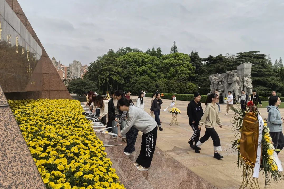 同学们怀着无比崇敬的心情,向人民英雄敬献花篮,缅怀革命先烈、致敬人民英雄。