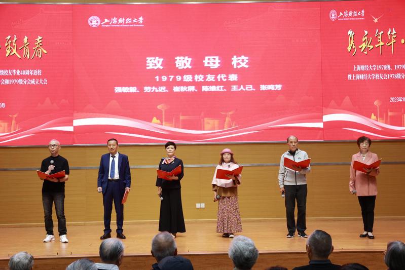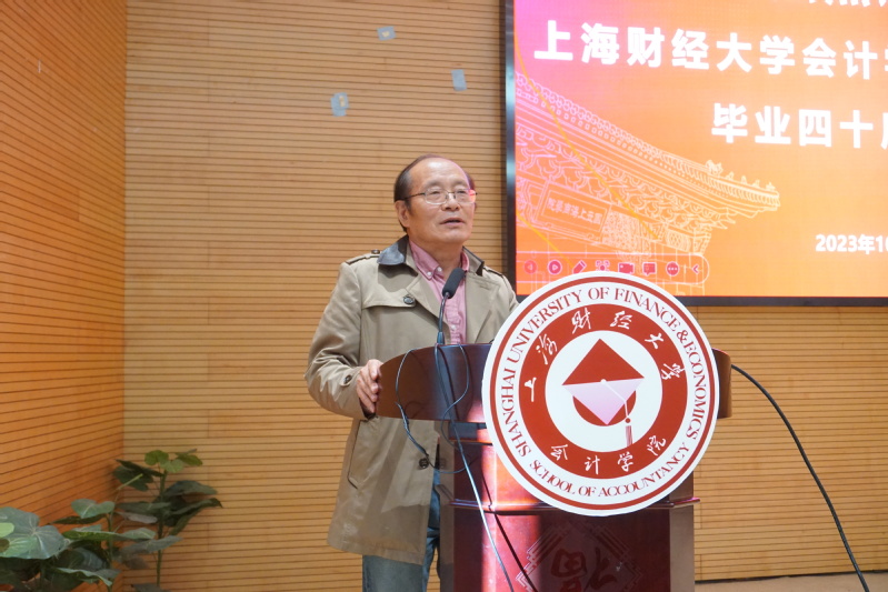 1978级会计学甲班徐海根校友、1979级会计学甲班尤家荣校友、1979级会计学乙班谢荣校友分别代表年级和班级发言。校友们分享了在上财求学的宝贵经历,对学校的精心培育表示诚挚感谢,并表示看到学校和学院如今的蓬勃发展,心中感到无比自豪,祝福母校与母院在未来的发展中蒸蒸日上、再创辉煌!