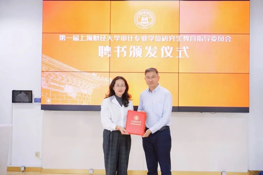 研究生院院长靳玉英代表学校为首届审计教指委主任委员李增泉颁发聘书。