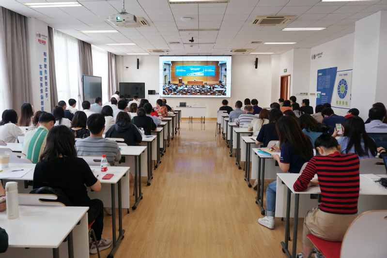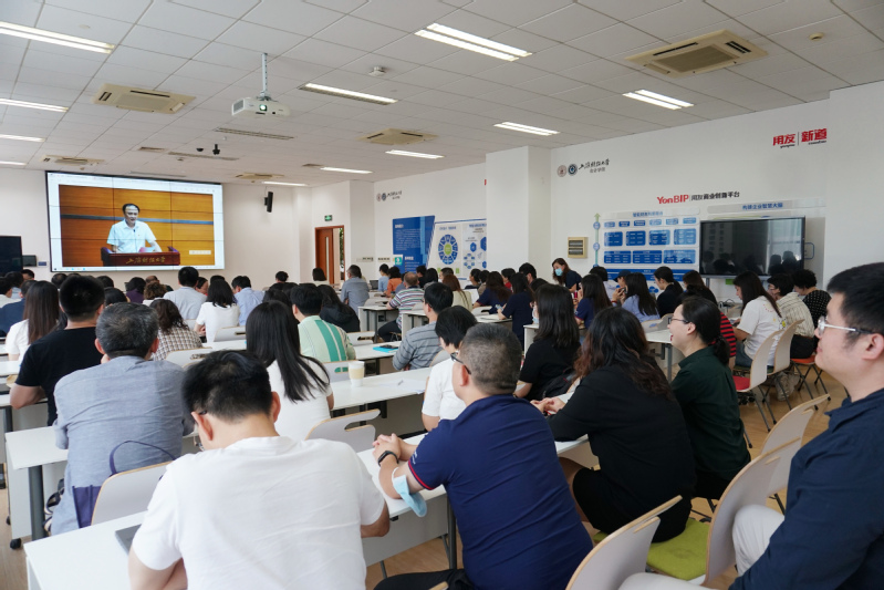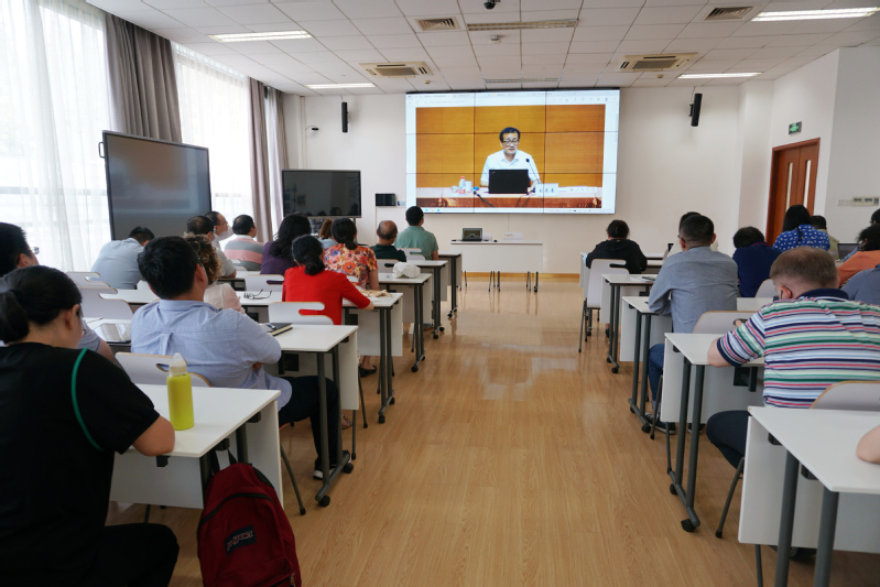 9月20日下午,上海财经大学刘元春校长在上海财经大学与上海商学院党委中心组联组学习(扩大)会上作《习近平新时代中国特色社会主义经济思想》专题辅导报告。会计学院党政领导班子、70余名教职员工在会计学院108室通过上海财经大学网络直播平台集体观看学习。