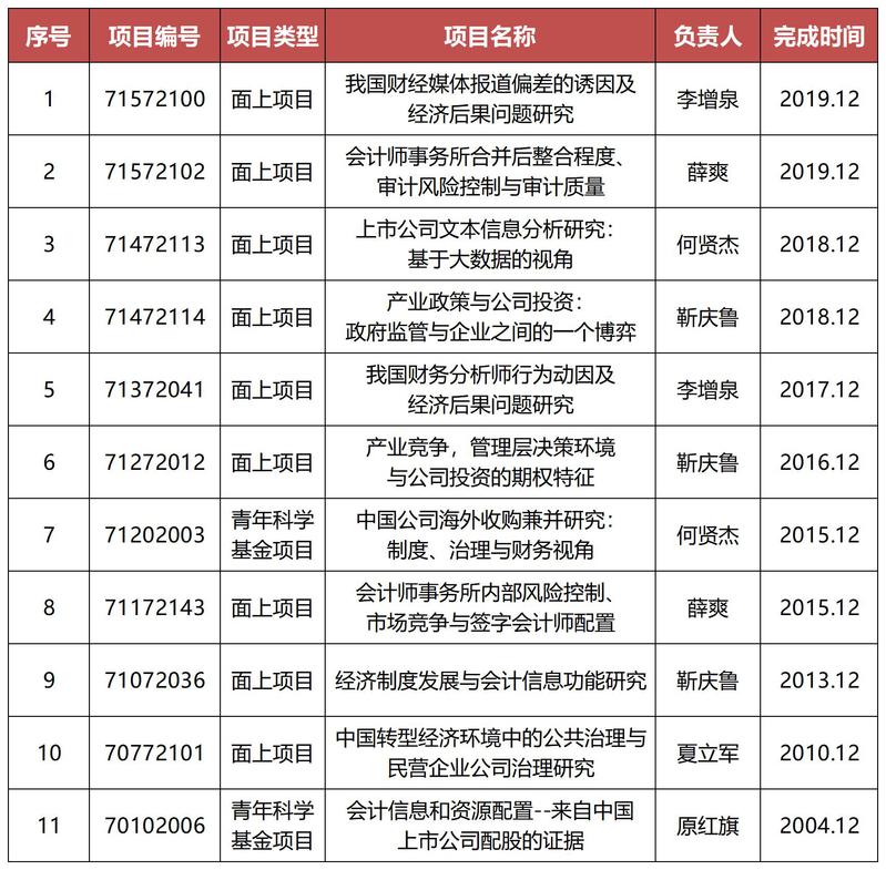 近日国家自然科学基金委员会管理科学部发布了2021年度项目绩效评估结果,我院李增泉老师主持的国家自然科学基金面上项目“我国财经媒体报道偏差的诱因及经济后果问题研究”(项目编号:71572100)和薛爽老师主持的国家自然科学基金面上项目“会计师事务所合并后整合程度、审计风险控制与审计质量”(项目编号:71572102)在本次绩效评估中均获得“特优”评价,占全校“特优”项目40%。截至本次绩效评估,会计学院一共有11个结题项目获得“特优”评价,占全校42.3%,位列全校第一。特此向获得“特优”评估等级的项目组及项目负责人表示热烈祝贺!