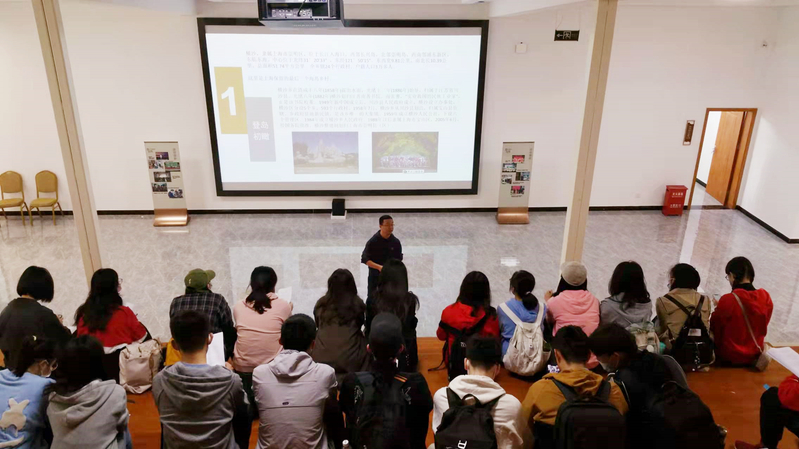 首站到达的是TT乡村公益图书馆。TT乡村公益图书馆馆长汤志强老师对会院师生一行的到来表示热烈欢迎,并带领大家参观了TT乡村公益图书馆。他表示,经过去年一年的建设,TT乡村公益图书馆设施变得更为完善,资料丰富的阅览室、主题鲜明的宣传馆都已具备,并借助村史展览图文并茂为大家讲解了丰乐村的过去、现在和未来,希望大家常来乡村走一走,看一看,期待大家此次行有所悟,悟有所感。师生们通过汤馆长的介绍,直观地体会到十九大以来丰乐村诸方面可喜的变化,深切感受到了丰乐村人与自然的和谐共融。