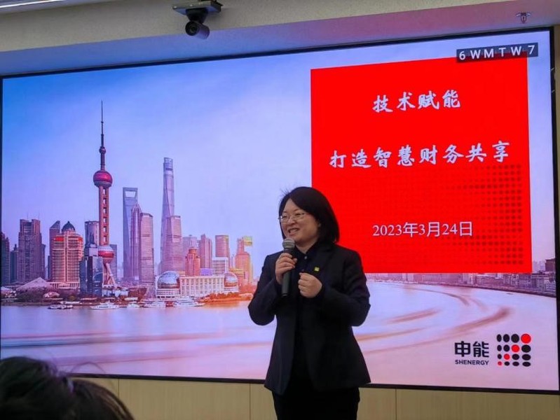 申能商服财务共享部总经理陈清女士,首先简短分享了自己在上海财经大学的学习经历,以及毕业后在申能集团内几所公司中近20年的工作经历。随后她以“技术赋能,打造智慧财务共享”为主题,就“2022年影响中国会计人员的信息技术”及五大潜在影响信息技术,结合申能财务共享的实践应用,与来访师生分享交流,希望大家在日后可以持续关注信息技术发展为财务工作带来的机遇和挑战,在未来发展成为智慧财务的引领者。