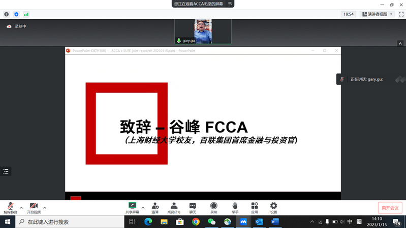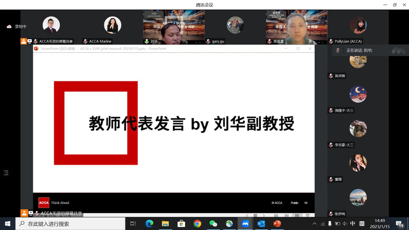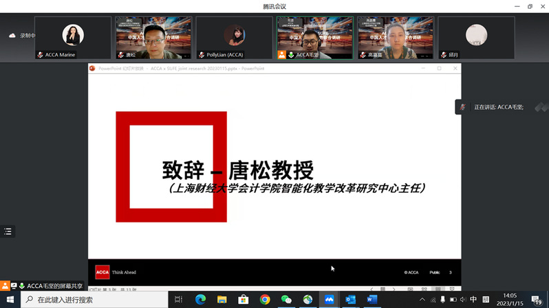 2023年1月15日,上海财经大学会计学院与特许公认会计师公会(ACCA)联合开展的《中国人才发展趋势报告》调研项目启动会在线举行。此次调研将以走访与深度访谈等形式,通过ACCA会员网络及上海财经大学校友网络,深入国有企业、民营企业和外资企业等不同类型行业和企业的财务团队第一线,探索中国会计师行业的工作变化,了解并追踪影响专业会计师的重要趋势。