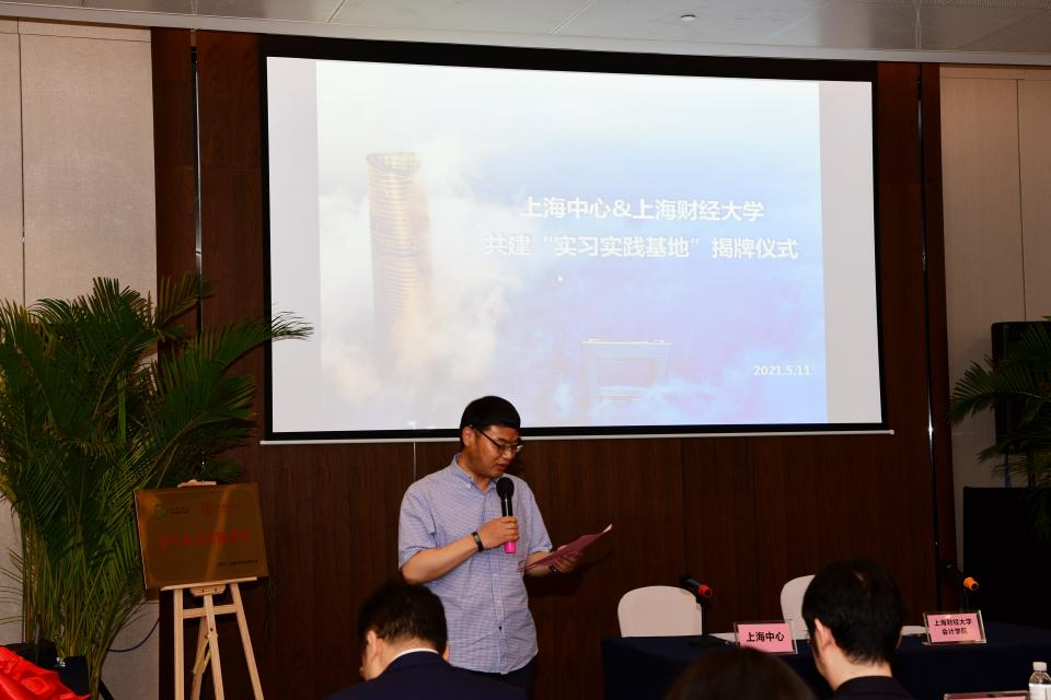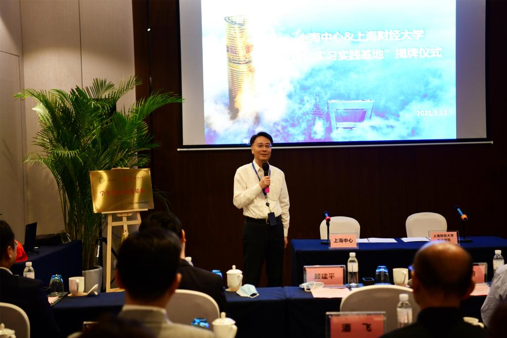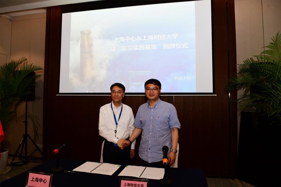 随后上海中心大厦建设发展有限公司总经理顾建平和上海财经大学会计学院院长靳庆鲁现场签署了战略合作协议并为共建学生实习实践基地揭牌。