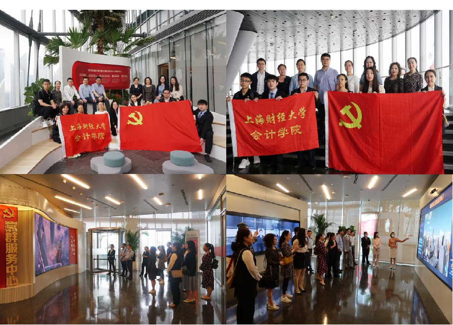 最后,潘飞教授开展了题为《商业不动产多渠道融资方式浅析》的专题讲座。上海中心直管干部、财务部人员等50余人聆听学习。学院师生在财务总监&计划财务部总经理乐嘉伟和人力资源高级经理周思渊的陪同下,前往上海中心大厦楼宇党建成果示范区(22层“金领驿站”党群服务中心)和改革开放成果展示区(B1、118层)通过现场解说、模型展示、影片介绍、实景参观等形式进行了云端党课现场教学,全面展示新时代楼宇党建新模式。