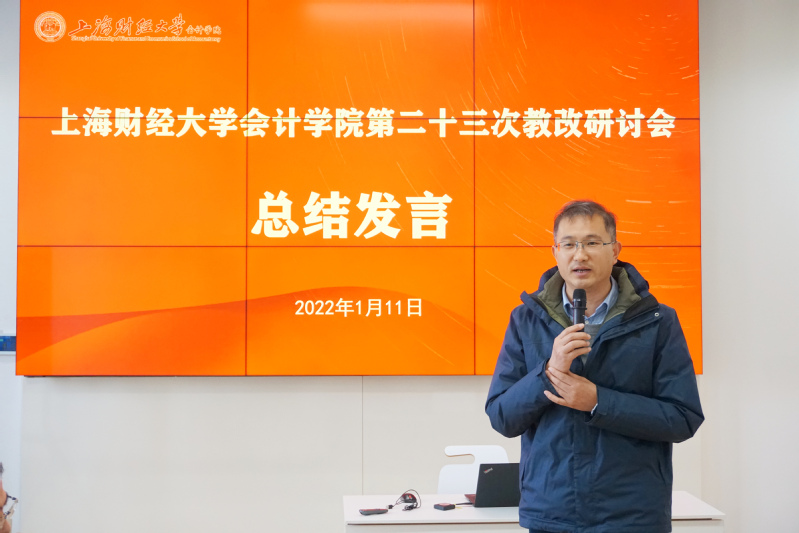 2022年1月11日,上海财经大学会计学院第二十三次教改研讨会在学院108室召开。校长助理李增泉出席会议并作指导讲话,学院党政领导班子、全体教职员工70余人共同参加会议。本次教改研讨会由会计学院党委书记周国良主持。