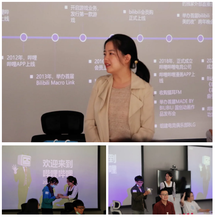 首先,Juliet Yang代表企业对会计学院师生的到来表示热烈欢迎,并简要介绍了企业发展历史。随后她通过有趣的问答互动方式,激发同学们对哔哩哔哩特有的“巨大商业化潜力”“高活跃高黏性的社区”“不断增长的UGC内容生态”“3C增长齿轮模式”的进一步理解,同时引导同学们从投资者角度共同探索哔哩哔哩投资高增长点和融资特色等方面内容。