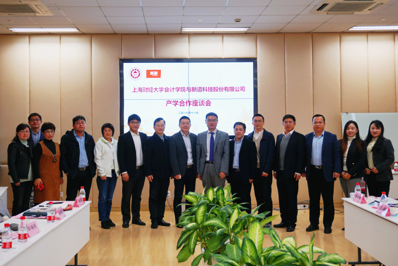 2019年11月25日,上海财经大学会计学院与新道科技股份有限公司产学研合作座谈会在会计学院106室顺利召开。新道科技股份有限公司总裁杨晓柏,助理总裁兼方案研究与营销BG总经理宋国荣,助理总裁兼研发BG总经理贾大明,用友集团数据服务高级专家陈柳源、张迎新等一行11人来访我院。会计学院院长靳庆鲁,副院长曾庆生,党委副书记黄莎等10人共同出席会议。会议由会计学院副院长朱凯主持。